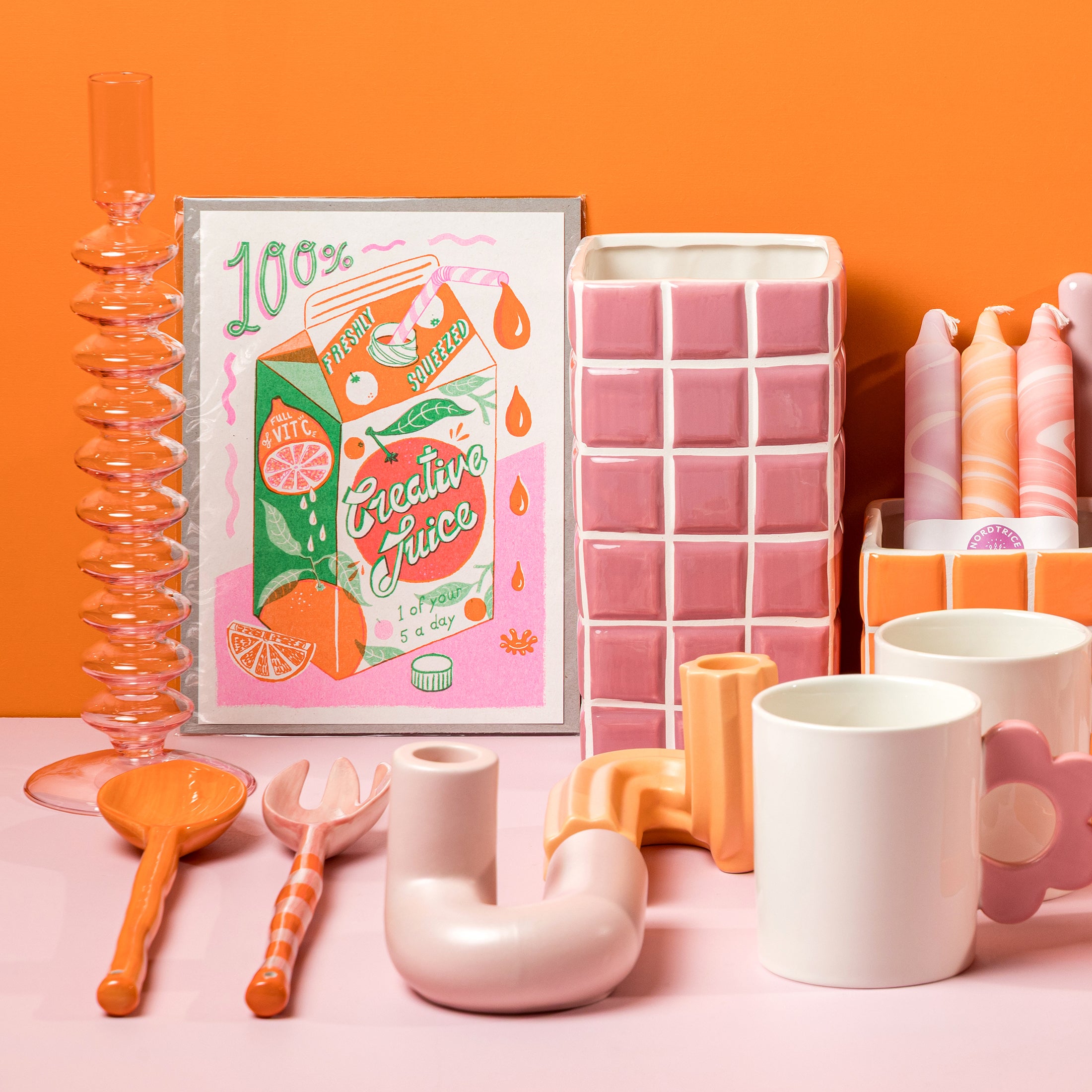 Craquez pour l'un des vases les plus emblématiques de la marque &Klevering, le Vase "Tile" et son design à carreaux rose. Il sera idéal pour accueillir vos bouquets de fleurs fraiches ou séchées tout en apportant une touche de couleur à votre intérieur. Et si vous n'aimez pas les fleurs, il sera également parfait en pot à ustensiles dans une cuisine pop !