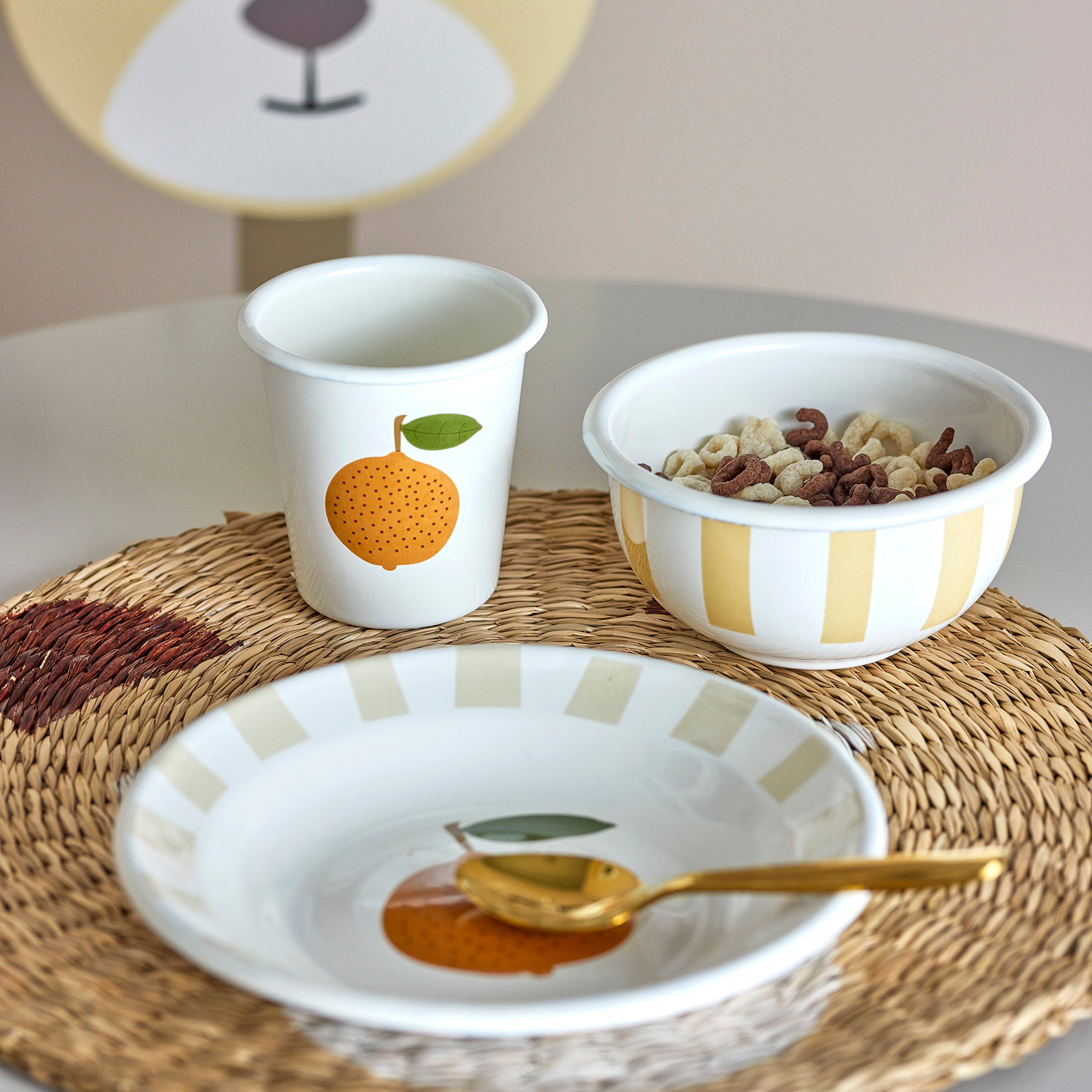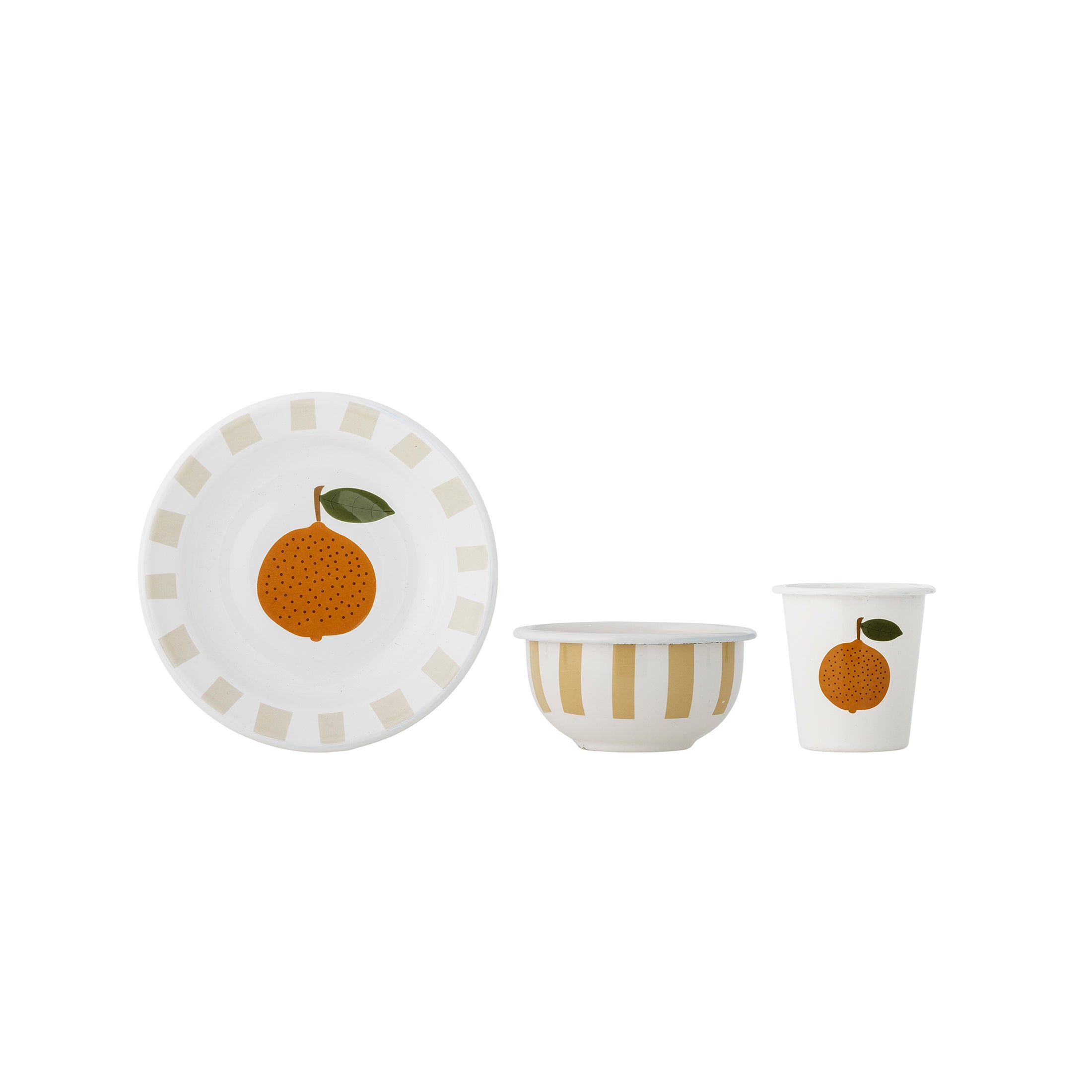 Apportez une touche de douceur à table avec notre Ensemble de vaisselle en métal émaillé "Agnes" par Bloomingville Mini. Composé d’une tasse, d’un bol et d’une assiette, il séduit par ses motifs d’oranges et ses fines rayures dans des tons apaisants. À la fois pratique et plein de charme, cet ensemble accompagne les repas du quotidien tout en embellissant la table des petits. Un indispensable pour partager de jolis moments en famille, tout en délicatesse.